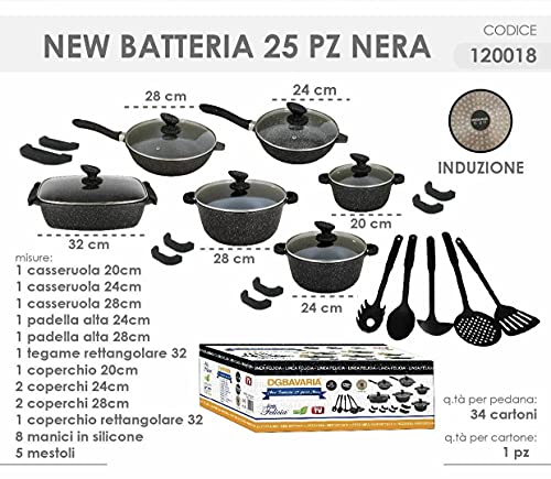 Bavaria Set Batteria di Pentole DG Pietra Antiaderente 25 Pezzi Varie Misure