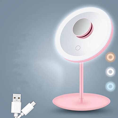 Bavokon Specchio per il trucco illuminato con ingrandimento - Specchio LED per trucco dimmerabile a 3 colori,Specchio cosmetico girevole con luce ad anello, specchi da trucco da tavolo per donne
