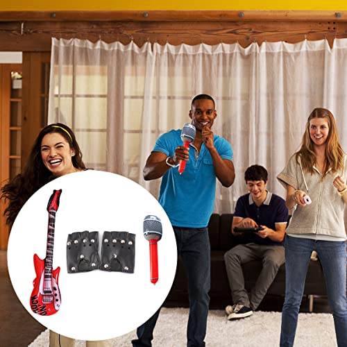 La Confezione Include: riceverai un paio di guanti punk, 1 Chitarre Gonfiabili e microfono gonfiabile;
