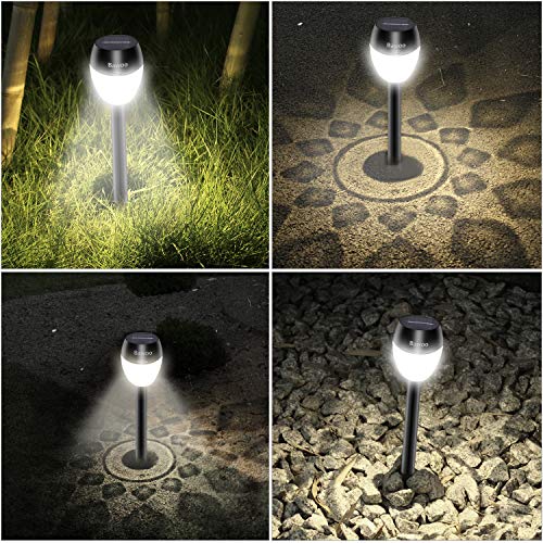 Ricarica automatica: lampada solare esterna ha una batteria solare migliorata 600 mAh e una funzione di rilevamento automatico, che si spegne durante la giornata, carica automaticamente dal sole per 4 - 6 ore, si accende 10 - 12 ore durante la notte.