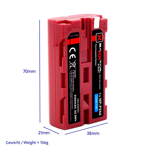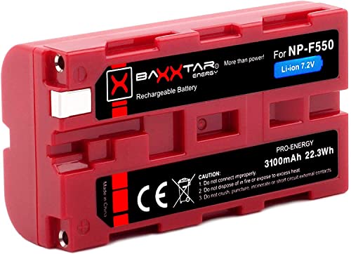 BAXXTAR PRO Compatibile con Batteria Sony NP-F550 NP-F570 - LG Cells inside - (3100mAh reale)