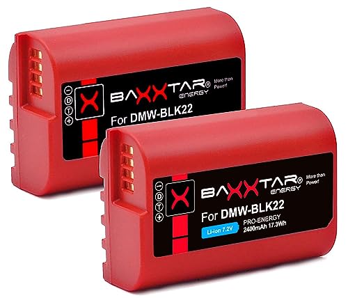 Baxxtar Pro DMW-BLK22 Batteria 2400 mAh (2x) - ottimizzata per Lumix DC-GH6 con sensore NTC attivo