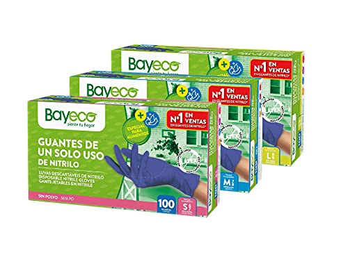 Bayeco - Guanti Monouso in Nitrile - Colore Blu - Ambidestri - Finitura Bordo Arrotolato - Dita Testurizzate per Una Presa Migliore - Confezione da 100 Pezzi - Taglia L