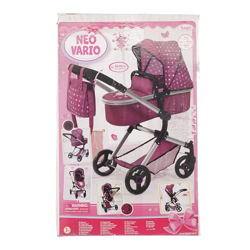 Bayer Design-18467AA Neo Vario Carrozzina per Bambole, A Pois, Colore Rosso, Rosa, 52 cm, 18467AA