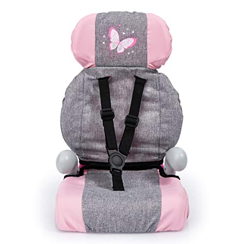 Bayer Design- Giocattolo, Seggiolino Auto, Accessori per Bambole con Cintura, Moderno, Colore Jean Gris, Rose avec Papillon, 67533AA