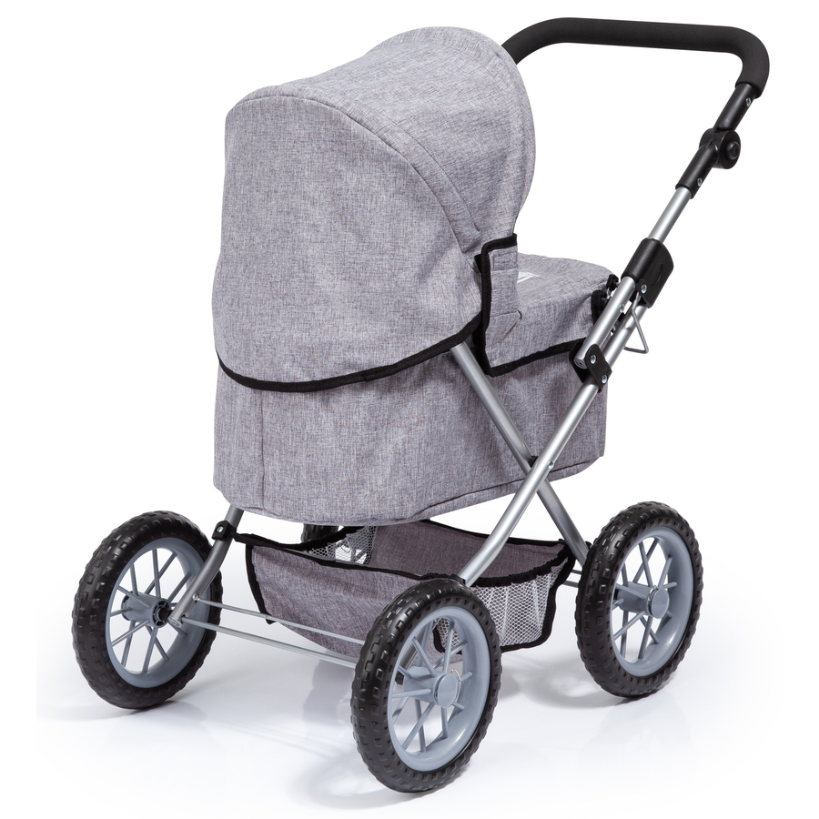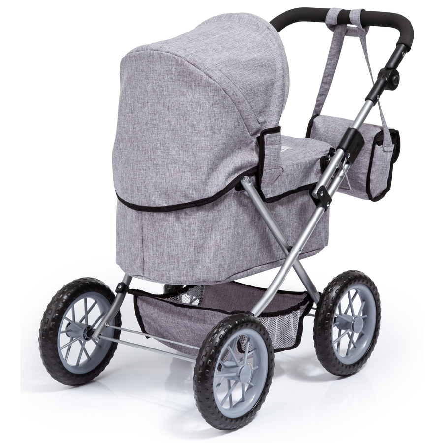 Trendy è un bellissimo passeggino per bambole (max. 46 cm) e il sogno di ogni bambina! Il manico è regolabile in altezza e permette anche ai più piccini di non lasciare la bambola a casa. Il passeggino è pieghevole per facilitarne il trasporto. Ideale per i viaggi. Grazie alla borsa spesa, puoi aiutare tua mamma a fare la spesa! Nel vano portaoggetti, integrato, c'è posto per tutto quello che serve alle piccole mamme. Dettagli del prodotto: in confezione regalo Altezza manico: 39 - 68 cm Dimensioni: ca. 41 x 68 x 67 cm Istruzioni per la pulizia: Lavare a mano Età: a partire da 3 anni Attenzione: Non adatto ai bambini di età inferiore a 3 anni. Contiene piccoli pezzi che possono essere ingeriti. Pericolo di soffocamento!