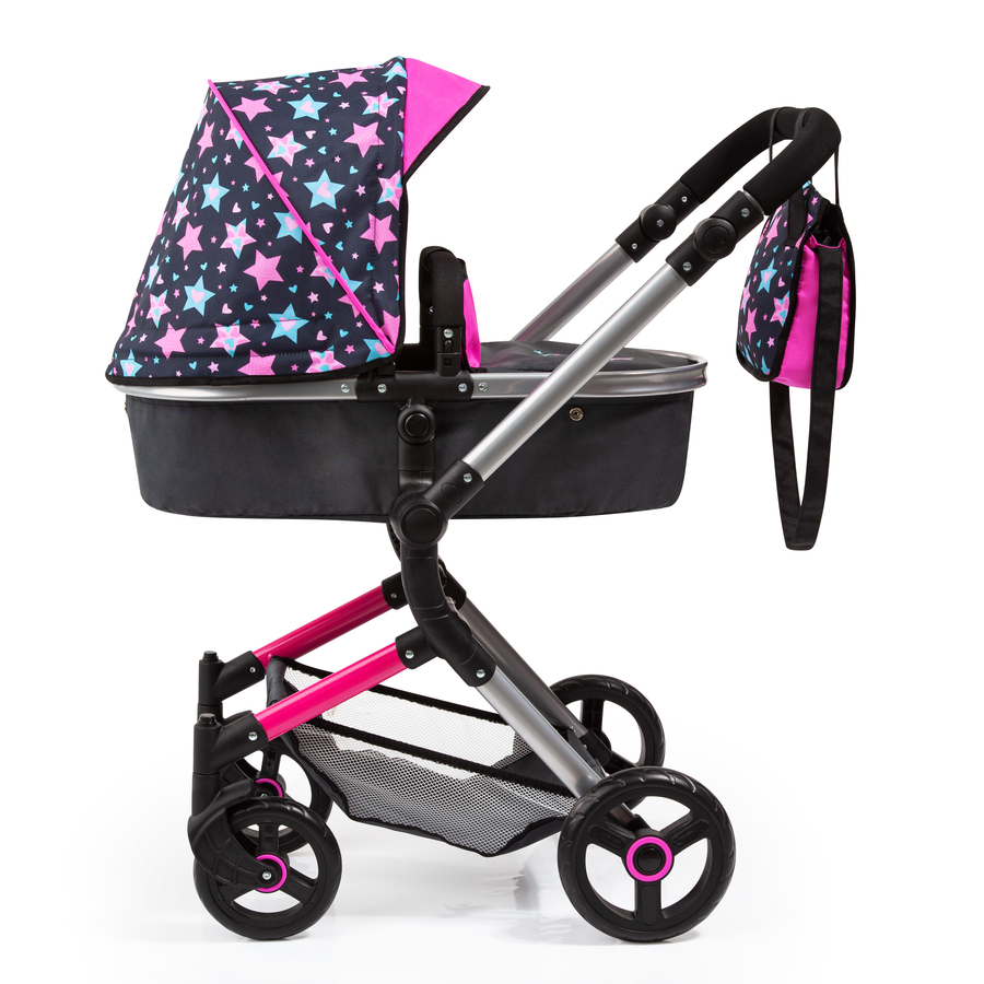 Neo Vario è una carrozzina combinata per bambole modern con un design di tendenza Design e tante opzioni di gioco. Può trasportare bambole fino a 52 cm di altezza. Grazie al manico regolabile in altezza da 62 a 79 cm, può essere adattata in modo ottimale alle dimensioni del bambino. La vasca della carrozzina può essere indossata sia in direzione di marcia che in direzione del bambino. Inoltre, lo spintore può essere orientato in modo da poter guidare la carrozzina da entrambi i lati. Inoltre, la vasca può essere facilmente trasformata in un modern en passeggino o in uno stabile jogger per bambole tramite pulsanti e cambiando semplicemente la posizione. La copertura della vasca è ideale per proteggere la bambola dalle intemperie, come il sole o il vento, sia in posizione sdraiata che seduta. Tra l'altro, la carrozzina è dotata di ruote anteriori piroettanti che la rendono particolarmente facile da girare. La carrozzina per bambole Vario può essere facilmente ripiegata per il trasporto. La borsa in dotazione è in tinta con la carrozzina. È dotata di una cerniera per chiuderla e può essere utilizzata come borsa a tracolla (manico lungo) o come borsetta - sono disponibili anche 2 manici corti. Oltre alla borsa, il cestino integrato nel Vario offre spazio per altri utensili da gioco. Dettagli del prodotto: Dimensioni (lunghezza x larghezza x altezza): 79 x 42 x 86 cm Maniglia regolabile in altezza: 62-79 cm Bambole fino a 52 cm Trasformabile in passeggino Pieghevole Borsa inclusa Colore: nero Età: da 3 anni Attenzione Non adatto a bambini di età inferiore ai tre anni. Pericolo di soffocamento a causa delle piccole parti che possono essere ingerite.