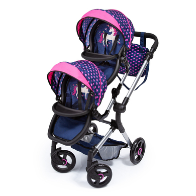 Dettagli del prodotto: Età: da 3 anni Questa carrozzina per bambole gemelle modern e è adatta a bambole alte fino a 46 cm. La carrozzina è dotata di capottine parasole regolabili e di una maniglia per la spinta regolabile in altezza, in modo da poterla adattare in modo ottimale alle dimensioni del bambino. I sedili del passeggino gemellare possono essere fissati singolarmente nella direzione del bambino o nella direzione di marcia, in modo che le bambole possano anche guardarsi l'un l'altra, ad esempio. Inoltre, è possibile allineare i sedili in modo che siano uno dietro l'altro o che uno sia posizionato più in basso e l'altro più in alto. Può anche essere piegato per risparmiare spazio Grazie al cestino integrato, è possibile riporre tutto il necessario per una gita con le bambole. La carrozzina gemellare offre anche la possibilità di agganciare il seggiolino auto EasyGo (non incluso nella consegna). Dimensioni e peso: Dimensioni da assemblato (lunghezza x larghezza x altezza): 81,5 x 41,5 x 81cm Peso: 3,5 kg Materiale e cura: Alluminio Plastica Poliestere Lavaggio a mano