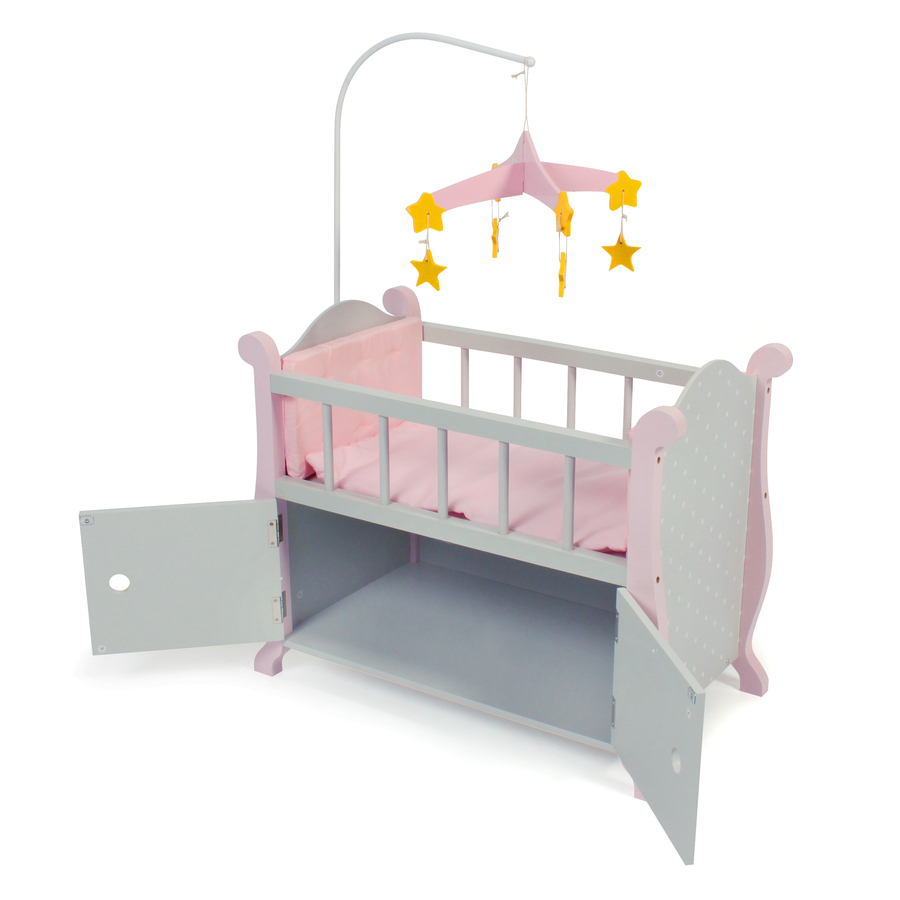 Questo bellissimo letto per bambole è adatto a tutte le bambole fino a circa 46 cm. Con una dolce giostrina appesa sopra il letto. Con lati imbottiti. Le due ante anteriori dell'armadio possono essere aperte e offrono ampio spazio per gli accessori. Dettagli: Dimensioni: 57 x 31 x 78 cm Altezza della bambola max. 46 cm Peso: 4,9 kg Età: a partire da 3 anni Attenzione: Attenzione Non adatto a bambini di età inferiore a 3 anni. Pericolo di soffocamento, causa piccoli pezzi.