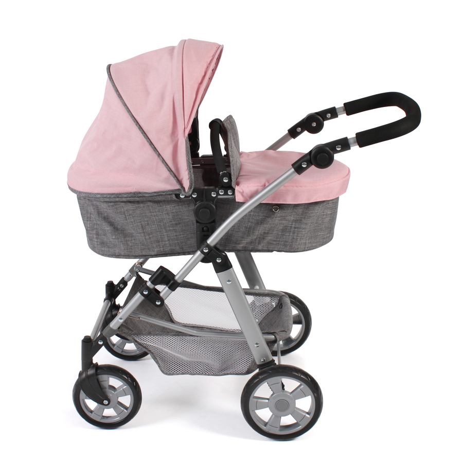 Carrozzina per bambole combinata, nuova e alla moda, con molte funzioni pratiche. Le ruote anteriori piroettanti consentono ai bambini di alternarsi facilmente. Il seggiolino sportivo è dotato di una barra di sicurezza e può essere trasformato in poche mosse in un accessorio per il bagno con una superficie di appoggio piana. La copertura della navicella funge anche da copertura antivento per il seggiolino sportivo. Il seggiolino sportivo o la vaschetta per il bagnetto possono essere fissati su entrambi i lati, sia in direzione di marcia che rivolti verso la mamma della bambola. La maniglia di spinta è regolabile in altezza da circa 45 a 84 cm per adattarsi a quasi tutte le corporature. Con tettuccio parasole e rete portabagagli per vari utensili. La station wagon Nele può essere ripiegata in modo molto semplice e di dimensioni ridotte. Dettagli del prodotto: Dimensioni dell'articolo (lunghezza x larghezza x altezza): 71 x 44,5 x 85 cm Dimensioni di ripiegamento (lunghezza x larghezza x altezza): 67 x 44,5 x 25 cm Dimensioni della bambola: fino a circa 50 cm Maniglia di spinta regolabile in altezza: 45 - 84 cm Peso: 4,2 kg Il sedile sportivo può essere trasformato in un accessorio da bagno con superficie di appoggio piana Tettuccio parasole e rete portabagagli Pieghevole Età: da 3 anni Attenzione Non adatto ai bambini di età inferiore ai 3 anni, poiché esiste il rischio di soffocamento.