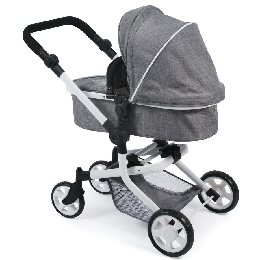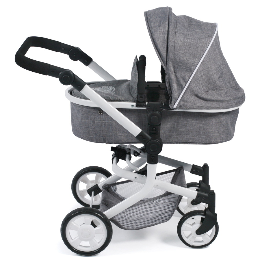 Dettagli del prodotto: Età: da 3 anni Carrozzina per bambole combinata, nuova e alla moda, con molte funzioni pratiche e una struttura chic. Le ruote anteriori piroettanti facilitano la percorrenza delle curve da parte dei bambini Il seggiolino sportivo è dotato di una barra di sicurezza e può essere facilmente trasformato in una navicella con una superficie di appoggio piana. La copertura della navicella funge anche da paravento per il seggiolino sportivo Il seggiolino sportivo o la vaschetta per il bagnetto possono essere agganciati su entrambi i lati, sia in direzione di marcia che rivolti verso la mamma della bambola. Il maniglione di spinta è regolabile in altezza da circa 47 a 80 cm e può quindi essere adattato a quasi tutte le corporature. Inoltre, il maniglione può essere orientato in modo da poter guidare la carrozzina da entrambi i lati. Con tettuccio parasole e rete portaoggetti per vari utensili Il Kombi Mika può essere ripiegato in modo molto semplice e piccolo Dimensioni della bambola: massimo 52 cm Dimensioni e peso: Dimensioni da montato (lunghezza x larghezza x altezza): 73 x 41 x 82 cm Maniglia di spinta: 47 - 80 cm Peso: 4 kg Avvertenze e istruzioni di sicurezza: Attenzione: non è adatto ai bambini di età inferiore ai 3 anni, poiché le piccole parti possono essere ingerite.