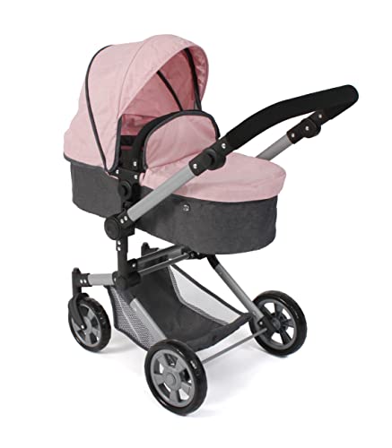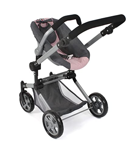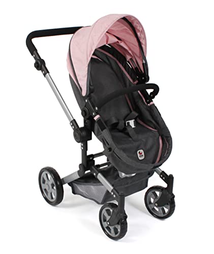 Bayer Chic 2000 - Passeggino per bambole Linus, passeggino combinato 3 in 1 per bambini dai 4 agli 8 anni, set passeggino per bambole, grigio scuro, rosa