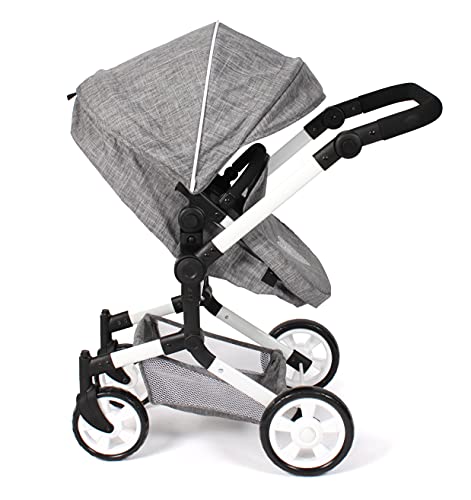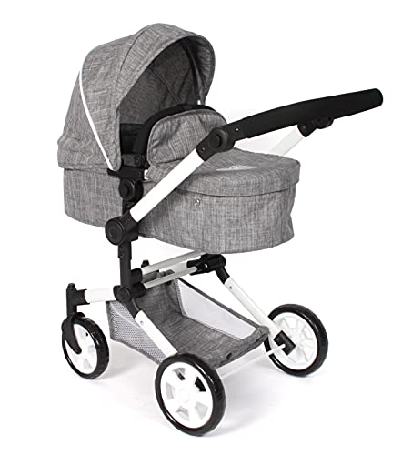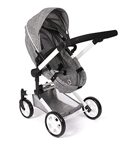 Bayer Chic 2000 - Passeggino per bambole Linus, passeggino combinato 3 in 1 per bambini dai 4 agli 8 anni, set di passeggino per bambole, jeans grigio