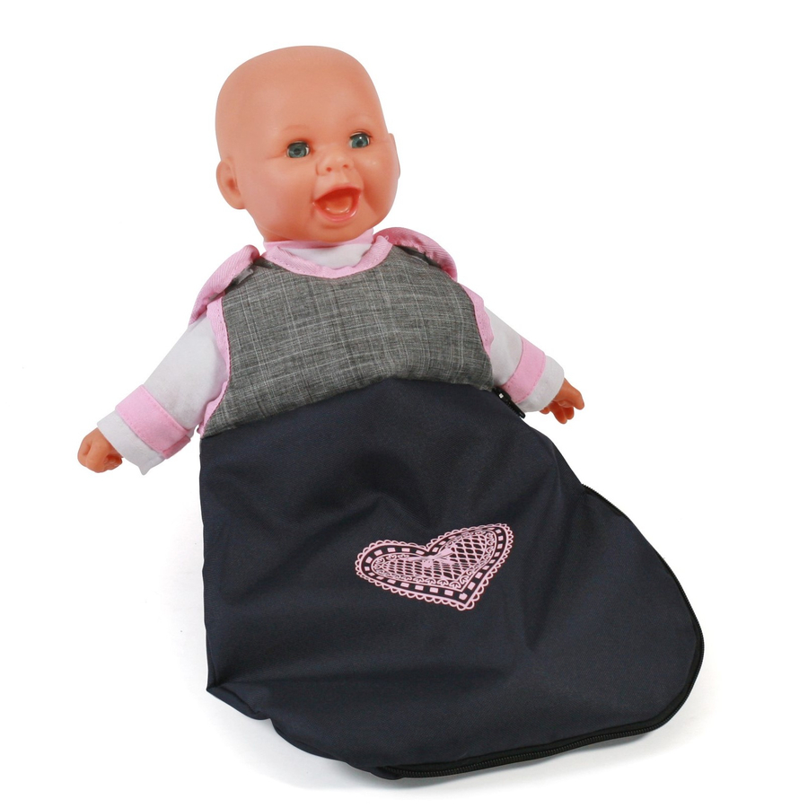 In questo comodo sacco nanna tutte le bambole ameranno dormire. Può essere completamente aperto tramite la lunga cerniera laterale e le chiusure in velcro nella zona delle spalle, in modo da poter essere utilizzato anche come fasciatoio. Adatto per bambole fino a ca. 46 cm. Dettagli del prodotto: Dimensioni (lunghezza x larghezza x altezza): 40 x 30 x 2 cm Dimensione della bambola: fino a circa 46 cm Peso: 0,1 kg Materiale: Poliestere Età: Da 3 anni Attenzione! Non adatto a bambini di età inferiore ai tre anni. Rischio di soffocamento dovuto a piccole parti che possono essere ingerite.