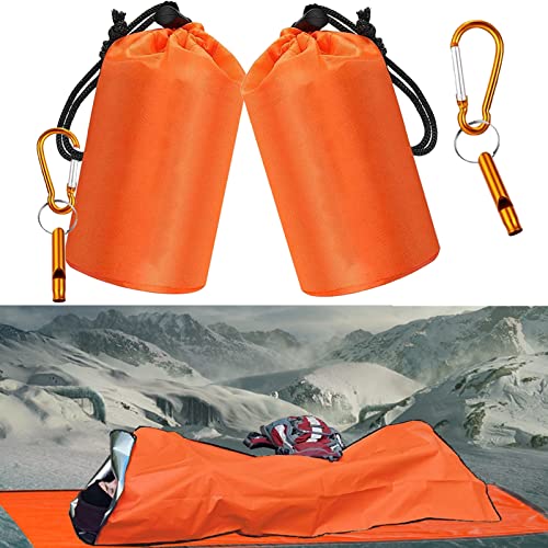 BAYINBROOK 2 Pezzi Sacco a Pelo di Sopravvivenza di Emergenza Riutilizzabile, Coperta di Isolamento Termica di Emergenza per Esterno Campeggio Escursionismo Attività di Avventura, Con Fischietto