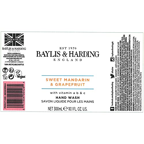 Baylis & Harding - Lavaggio a mano al mandarino dolce e pompelmo, 300 ml, confezione da 6