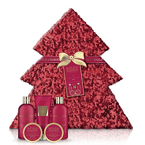 Baylis & Harding Midnight Fig & Pomegranate, grande confezione regalo a forma di albero con paillettes luccicanti
