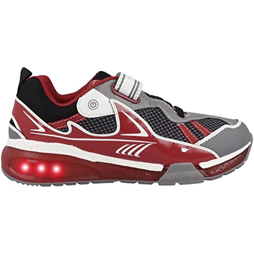 Geox J Bayonyc Boy A, Sneakers Bambini e ragazzi, Grigio/Rosso (Grey/Red), 36 EU