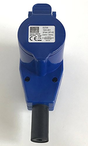 230 V, 16 A, 3 poli. Grado di protezione IP44 a prova di schizzi. Adatta per:area esterna, caravan, camper, campeggio.
