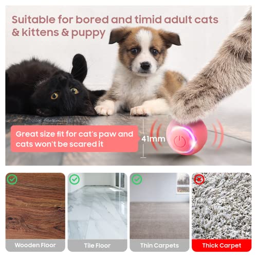 Baytion Gioco Gatto Interattivo Palla Giocattolo per Gatti in Casa Intelligente Rotolante Automatica, con 2 Modalità, Luci a LED Mutevoli, Ricaricabili di Tipo C per gatto e cucciolo, Rosa