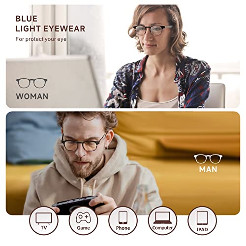 Baytion Occhiali Anti Luce Blu Occhiali Protettivi da vista Donna Uomo Per Computer Ufficio Gaming TV,Senza Prescrizione