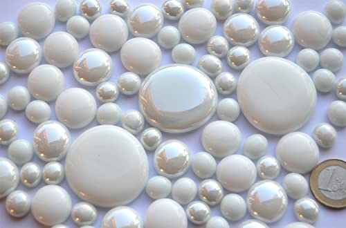 Bazare Masud e.K. Pepite di vetro da 230 g, mix opaco in 3 misure, 10-44 mm, non traslucido, parzialmente iridescente, pietre di vetro di circa 75 pezzi (bianco mix opaco parzialmente iridescente)
