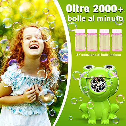 【Nuovo design 2021 a forma di rana】 Il soffiatore a bolle è progettato esclusivamente con un'adorabile forma di rana che può anche essere un giocattolo quotidiano per uso interno ed esterno. Usiamo questo soffiatore di bolle per goderci tanto divertimento in estate!