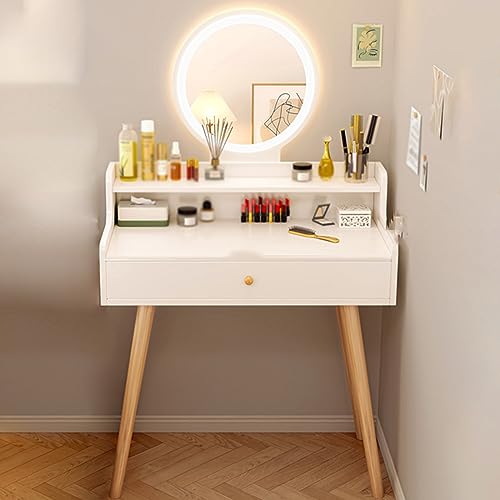 BBAUER Postazione Make Up, Tavolo per Trucco con Specchio, Toeletta da Trucco con Luci e Cassetti, Specchio Anity 3 Colori di Illuminazione Regolabili, White