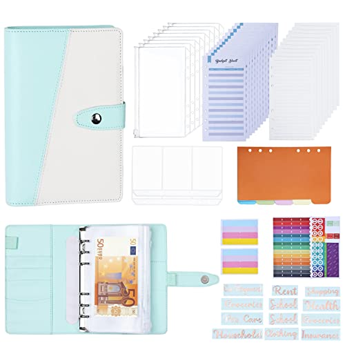 BBLIKE, Budget Planner in tedesco A6, raccoglitore ad anelli con 10 buste per contanti, 12 fogli di budget, 45 ricariche, 11 adesivi, 5 adesivi per etichette, verde
