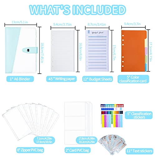 Contenuto della confezione: la nostra rilegatura a 6 fori conta 8 tasche con cerniera in PVC A6, 2 tasche per carte in PVC, 12 fogli per agenda finanziaria, 45 fogli di ricarica, 11 etichette adesive, 5 etichette adesive. Ideale per registrare le entrate e le uscite di denaro per ogni categoria, il che aiuta a rientrare nel budget e gestire facilmente le finanze.