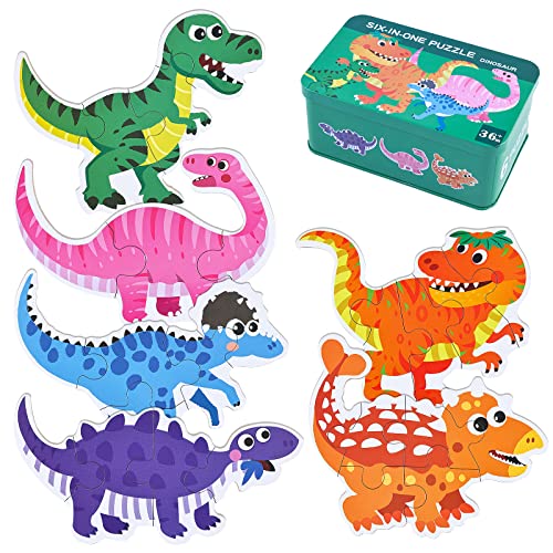BBLIKE Puzzle di Legno Set, 6 Pezzo Giocattoli Puzzle in Legno, puzzle bambini Educativo Giocattoli Giochi Set Regalo, Giocattoli Montessori per 3 4 5 Anni Bambina Bimbo Ragazza Ragazzo (Dinosaur)