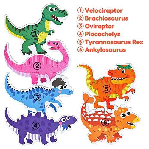 [Puzzle dinosauri] - Questo set di puzzle per bambini ha 6 temi dinosauri - Velociraptor, Brachiosaurus, oviraptor, plafochelys, tirannosaurus rex, ankylosaurus, e ogni tema contengono diversi pezzi di puzzle, rappresenta un grado di difficoltà di differenziazione.