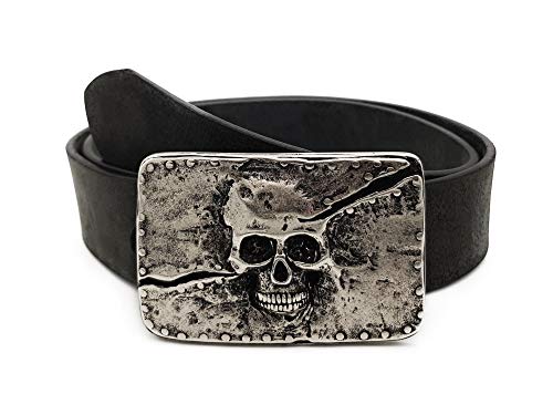 BBM-STYLE Cintura con teschio, in pelle di bufalo anticata Nero 115 cm