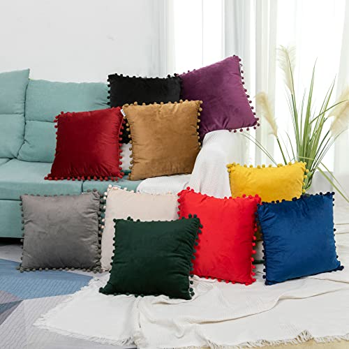 BCASE, Confezione da 2 federe per cuscini, decorative per la casa, cuscini, federa con palline originale, per soggiorno, letto, divano, studio, 45 x 45 cm, nero