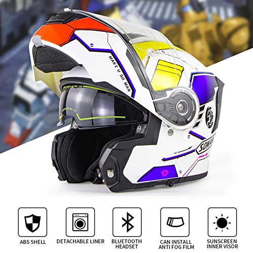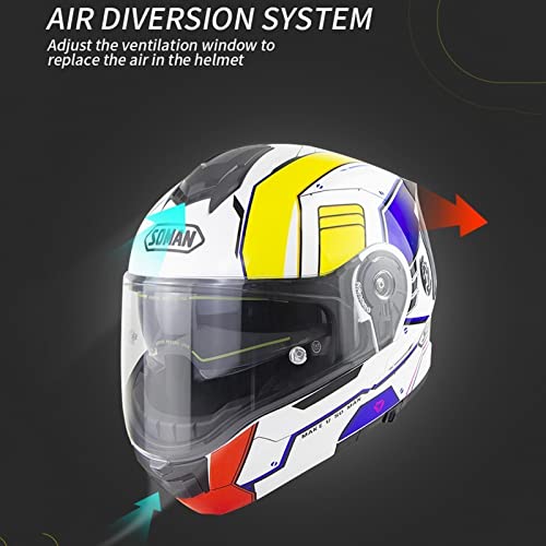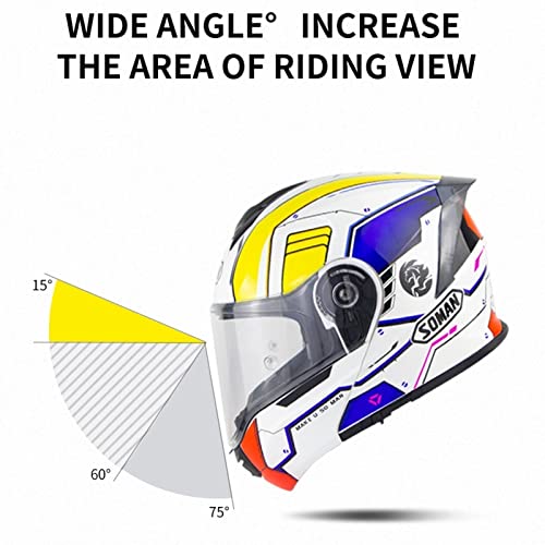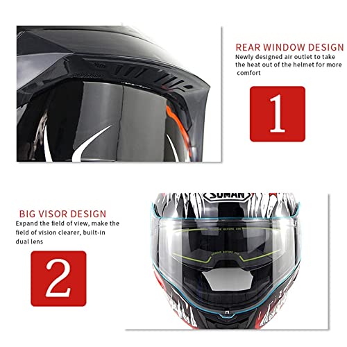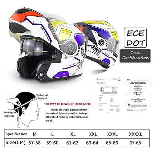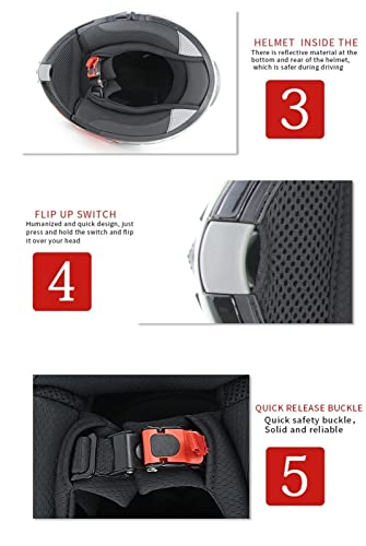 【Casco da moto modulare】: il casco pesa circa 1,75 kg, è conforme agli standard di sicurezza DOT FMVSS 218/ECE 22-05. Il casco con guscio in plastica tecnica ABS leggera e resistente agli urti, design dell'ammortizzazione EPS del flusso d'aria del canale ad alta densità con rivestimento del buffer per il massimo assorbimento degli impatti.