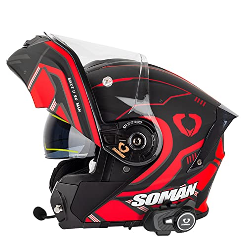 BCBKD Casco Moto con Interfono Bluetooth Integrato Casco Moto Apribile Modulare con Doppia Visiera Donna e Uomo Casco Modulare Bluetooth Omologato ECE per Moto Doppia Riduzione Rumore C,4XL