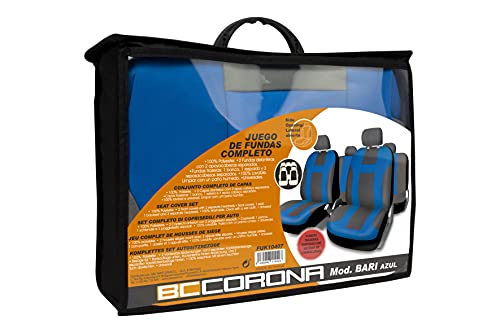 Bccorona FUK10407 Set Completo di Coprisedili per Auto, Modello Bari, Nero/Blu
