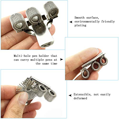 Bcpress 6 Pezzi Il portapenne in metallo a tre fori con clip da tasca, adatto a quasi tutte le dimensioni delle penne