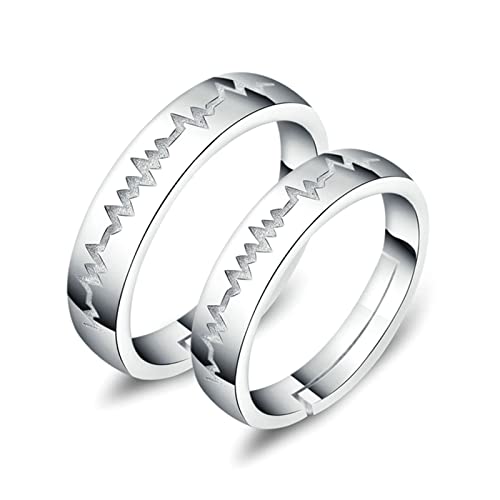 BCughia Fedine, Fedine Fidanzamento Coppia 925 con Battito Cardiaco Argento Sterling Fidanzamento Anelli Regolabili per Uomo e Donna