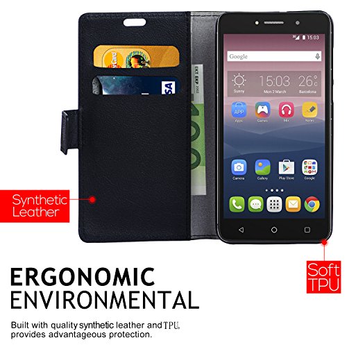 Bdeals Luxury Portafoglio in Bookstyle Protettiva Custodia in Pelle per Alcatel One Touch Pixi 4(5,0 pollici) 4G 5045X Flip Cover Caso, nero