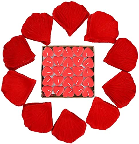 Bdecoll Romantico di Valentine's Day,1000 Petali di Rosa | 50 Candele Rosse a Forma di Cuore Romantiche Piccole Profumate per Eventi Matrimoni Anniversari Cerimonie