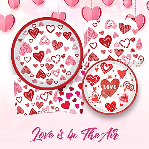 Bdecoll Set di stoviglie per feste di San Valentino, 98 pezzi, piatti di carta a forma di cuore, per 24 ospiti, piatti di carta con amore rosso, tovaglioli per San Valentino (rosso)