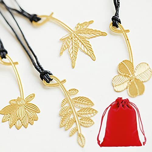 【Design Raffinato】Il segnalibro ha quattro forme diverse, che sono fiore di loto, foglia d'acero, quadrifoglio, foglia d'ulivo. Ogni segnalibro presenta una stringa nera per una facile etichettatura delle pagine.