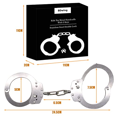 Bdwing Manette in Metallo con Chiavi, Manette Giocattoli Gioco per Bambini Giocattolo della Polizia Giocattolo Accessori Ruolo Vestito Operato Palla Puntello
