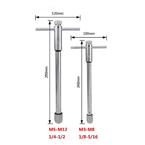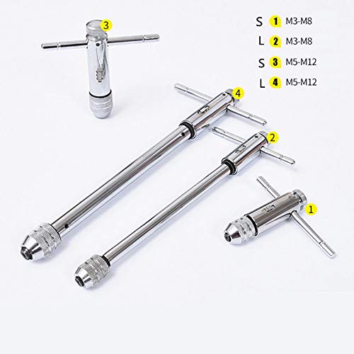 BE-TOOL - Giramaschi a cricchetto con manico a T e supporto per vite con filettatura metrica, per rubinetti in piccoli spazi (M3-M8), argento