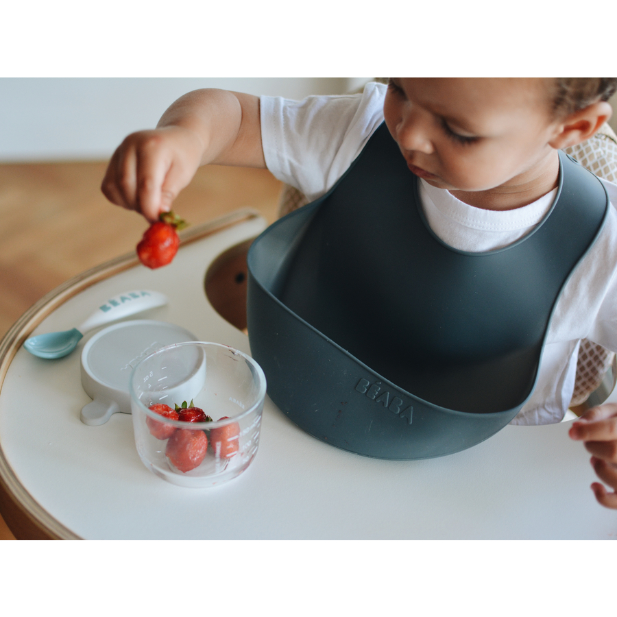 Dettagli del prodotto: Il compagno indispensabile per ogni pasto del bambino. Man mano che il bambino si abitua ai cibi solidi, il bavaglino in silicone diventa rapidamente una BEABA Il bavaglino in silicone diventa rapidamente un accessorio indispensabile. Il bavaglino con vaschetta di raccolta si lega al collo con due cordoncini di tessuto e si regola in base alla misura del collo del bambino. La scollatura morbida garantisce una maggiore libertà di movimento Materiale in silicone morbido e leggero Chiusura del collo regolabile Vaschetta di raccolta per il cibo (ampia apertura) Privo di BPA, BPF, BPS, PVC e ftalati Facile da pulire (lavabile in lavastoviglie) Design minerale Materiale e dimensioni: Materiale: silicone Istruzioni per la conservazione e la cura: Cura: lavabile in lavastoviglie
