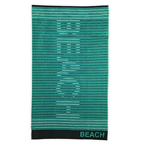 Telo Mare New Beach 100% Spugna di Cotone 90x165 cm Telo Rigato da Spiaggia Telo Piscina Beach Towel (Verde)