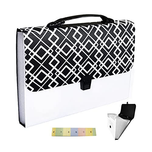 Beacil Cartella Portadocumenti A4 esteso in bianco e nero, 13 file manager di fisarmonica in plastica trasparente impermeabile estensibile per uso portatile in ufficio