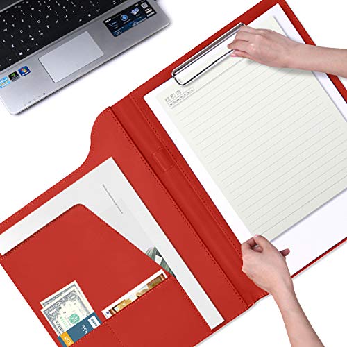 Beacil Custodia in pelle opaca con portfolio formato A4, vassoio intermedio per documenti, maniche e matita, porta biglietti per uomini e donne (rosso)
