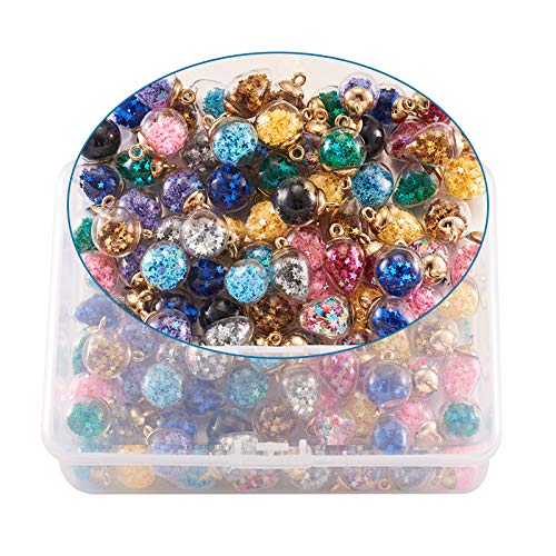 Beadthoven - 100 ciondoli a forma di sfera in cristallo con paillettes a forma di stella e brillantini a stella, per creazione di gioielli fai da te, bracciali, orecchini